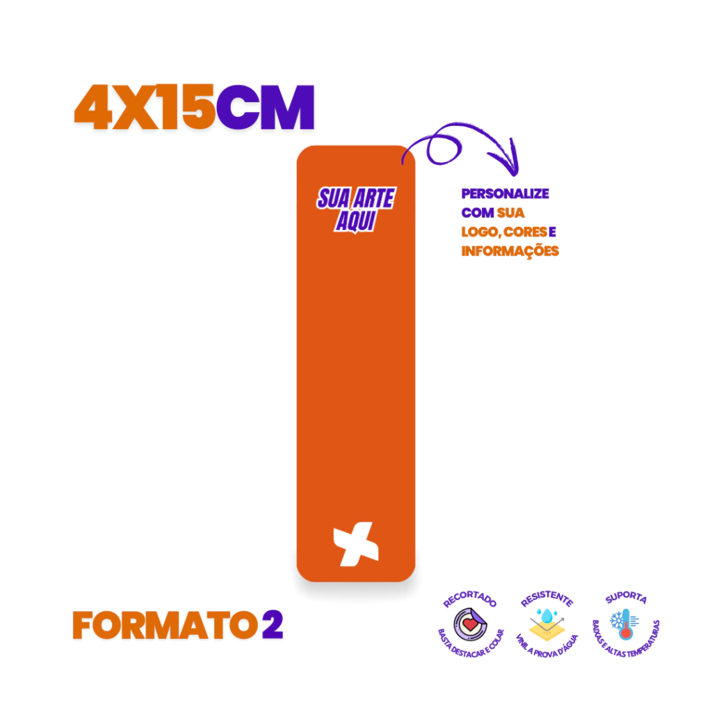 Formatos de Arte: Preferencialmente em PDF, JPEG ou PNG. Ajustamos a arte para o tamanho correto do adesivo.